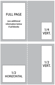 | Full Page Bleed | - - - | 6.25w x 9.25h |